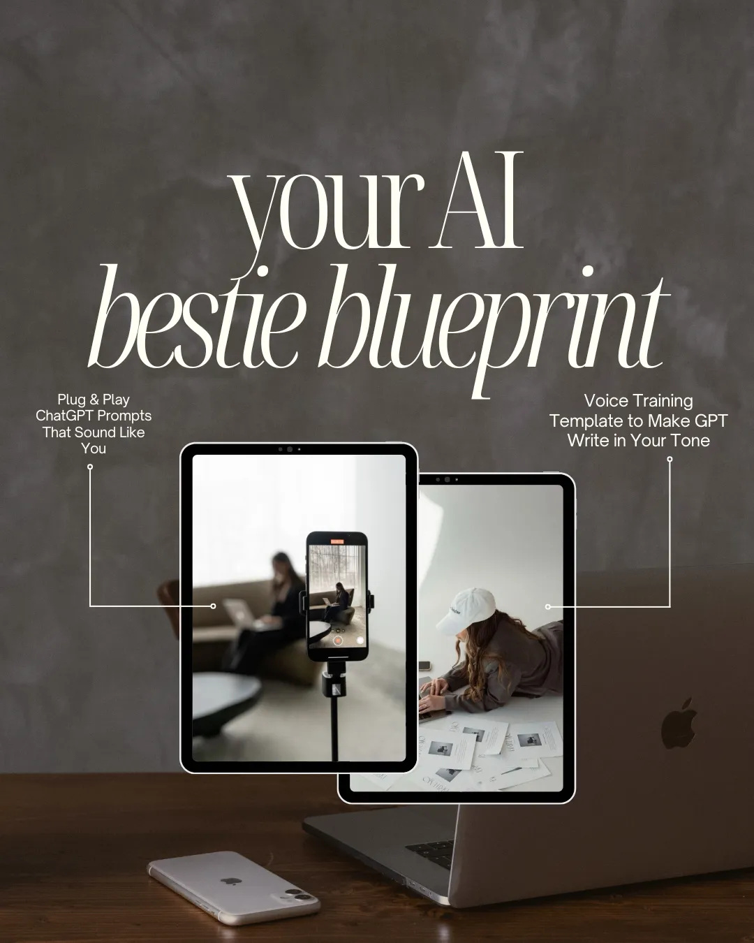 ✅ Use my AI Bestie Prompts to write captions, emails, Reels, tik toks, scripts, and DMs in way less time without losing your personality